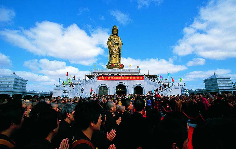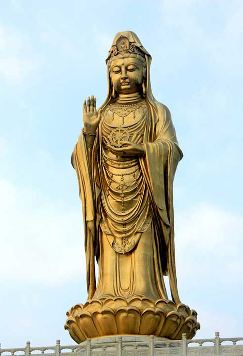 Mount Putuo is an island located to the south-east of Shanghai, in Zhoushan prefecture of Zhejiang province, China. It is famous in Chinese Buddhism, and is considered the bodhimanda of Avalokitesvara (Guan Yin), a revered Bodhisattva in many parts of East Asia. Mount Putuo is one of the four sacred mountains in Chinese Buddhism, the others being Mount Wutai, Mount Jiuhua, and Mount Emei (Bodhimandas for Manjushri, Ksitigarbha, and Samantabhadra, respectively).