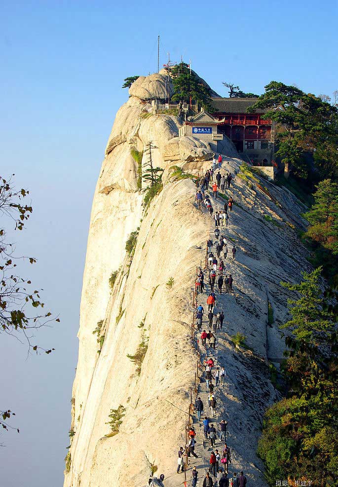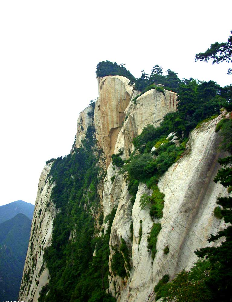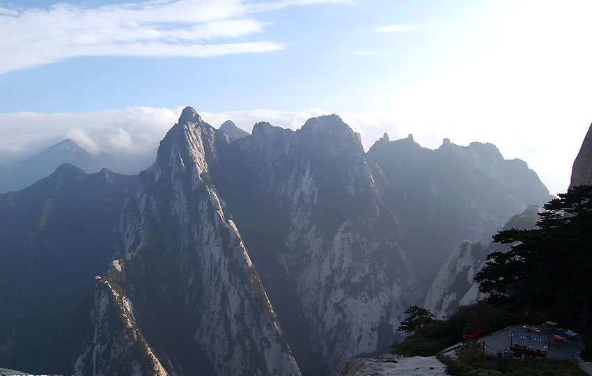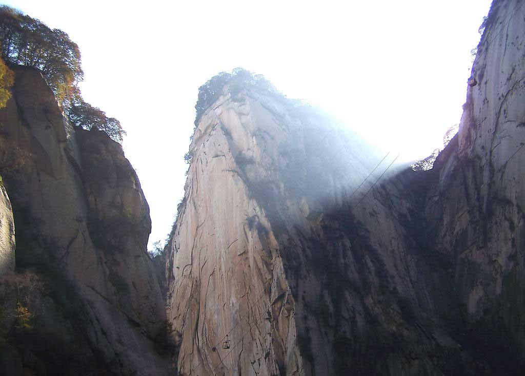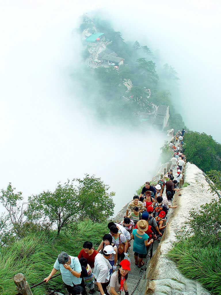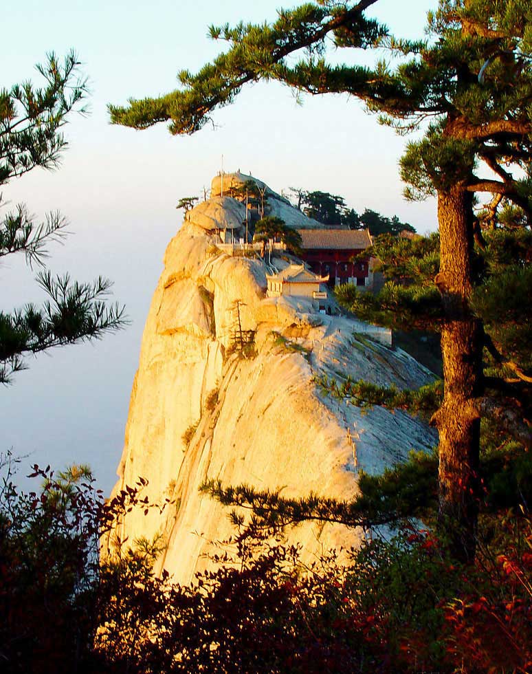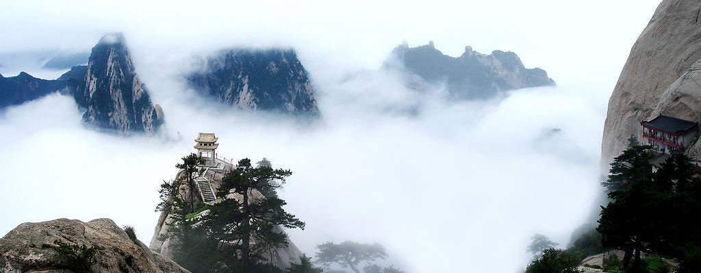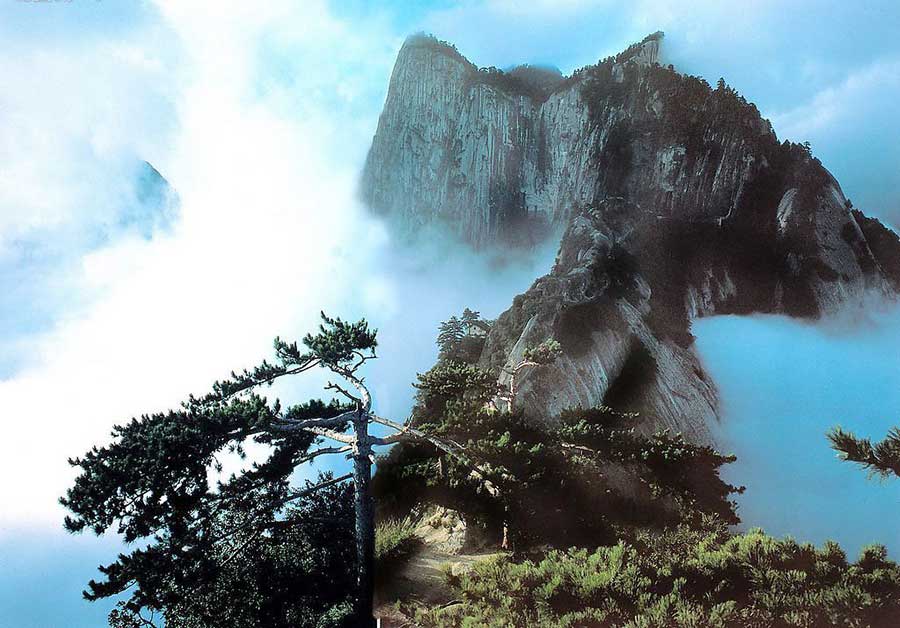 Mount Hua lies in the south of Hua Xian County, Shan’Xi Province, about 100 kilometres east of the city of Xi’an. It belongs to Qin Ling Mount area, and in the east section. Most peaks are very steep and very difficult to climb. The south peak is the highest and at the top of it is a large pond in which there is very clear water never dry all year long. Many people come to pay their respect, even many emperors, such as emperor Tang Gaozhu, Tang Taizhong(Tang Dynasty). And the princess Jinxian, the daughter of emperor Rui Zhong(Tang Dynasty), once came to Mount Hua to pursue Tao. Thus emperor Tang Xuanzhong ordered the construction of Woman-Immortal Temple and Silver Cloud Monastery.