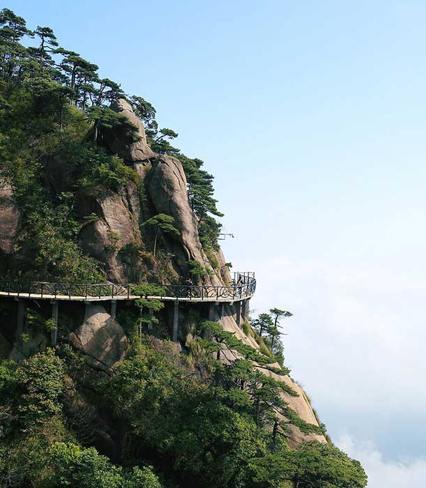 Sanqing Mountain’s fame as a Taoist resort has faded, but its natural beauty remains. Stay on the mountain for a day, and you will understand why ancient Taoist master Ge Hong (284-364) made pills of immortality here more than 1,700 years ago. With beautiful clouds, mist and strange-shaped pine trees, Sanqing Mountain is a fairyland far from the city life.