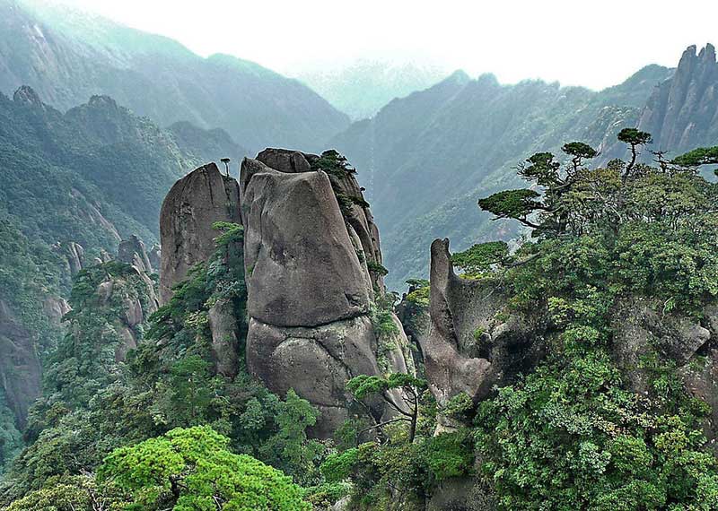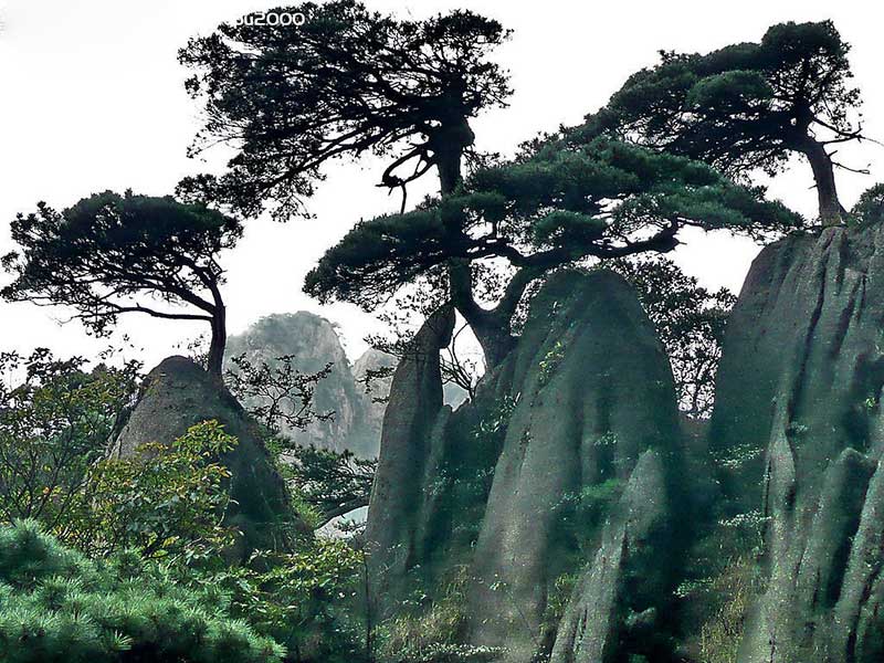Pine trees on Sanqing Mountain are as beautiful as those on Huangshan Mountain in Anhui Province, where they are regarded as the most beautiful in China. Many pine trees on the mountain are more than 100 years old. Many years of exposure to wind, sunshine and rain have twisted their branches, wrinkled their trunks, which has given them more strength and charm.