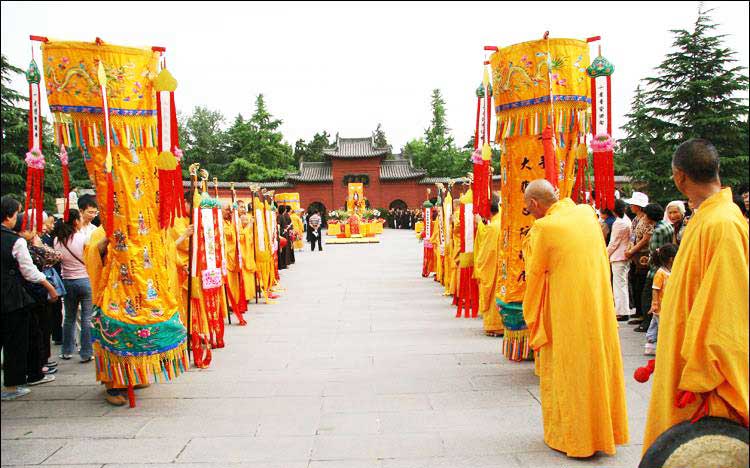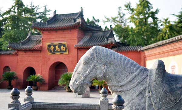 The White Horse Temple enjoys the reputation of the No.1 Ancient Temple of China. It lies on the south of Mangshan Mountain, and faces the Luohe River in the south. The construction of the temple started in the 11th year (68) during the Yongping reign of Emperor Mingdi in the Eastern Han Dynasty (25-220). The White Horse Temple has a history of over 1900 years. It is the first temple built since Buddhism spread to China in the Han Dynasty (206BC-220AD). According to historical records, Emperor Mingdi of the Eastern Han Dynasty dreamed of a golden man flying above the courtyard. After he woke up, the emperor sent Cai Yin and Qin Jing as envoys to western regions to invite Buddha and learn Buddhism. The two envoys underwent much hardship and met two eminent Indian dignitaries She Moteng and Zhu Falan on the way. Cai Yin and Qin Jing came back to Luoyang City with the two monks, and a white horse carrying the sutras. Emperor Mingdi ordered the construction of the temple to the north of the imperial road outside the Xiyong Gate of Luoyang City. The White Horse Temple, built after the style of Indian temples, was the place for She Moteng and Zhu Falan to translate Buddhist sutras and write sermons. In order to memorize the white horse for its carrying back of the sutras, the temple was named the White Horse Temple.