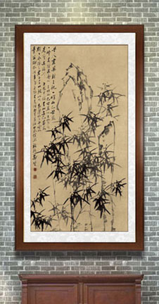 This painting 竹石图 was made by Zhen Banqiao 郑板桥 (1693-1765), Qing Dynasty. He was born in Xinghua, Jiangsu Province. He was skilled in doing fine brushwork to paint orchid, bamboo and stone. This painting scroll depicts bamboo flourishing in their own way in wilds.