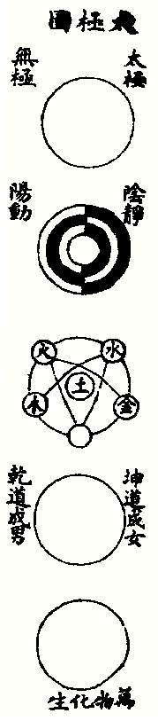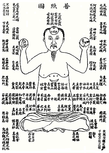 Imperative Doctrines for Innate Nature and Life Force is an ancient book, author unknown. The book illustrates and elaborates the inner refining theory and practice of Taoism, and related topics, The Three Holy Figures at the beginning in the book talks about the theory in terms of Buddhism and Confuciusnism, a clear sign of three religions syncretism. In a whole, it comes down to the Taoist theory. Legend has it that this book derived from the bands by disciples of Yin, who was the disciple of Lao Tzu. Yu Yongning, before Shenzong Emperor of Ming Dynasty (1615), attributed the origin of the book in such way: “There was a man called Wu Siming got the copy Imperative Doctrines for Innate Nature and Life Force from court historian Xin Tang, and it was heard the disciple of Yin wrote this book.’ Included in the book are Taiji Diagram by Confucians Zhou Dunyi, the Buddhist Goddess of Mercy of Secret Mantra, Soaring Figure of Taoism and so on. It is a nice reference for people who want to study the theory and methods on Taoism inner refining in Yuan and Ming Dynasty. Here we include all figures for this book for reference.